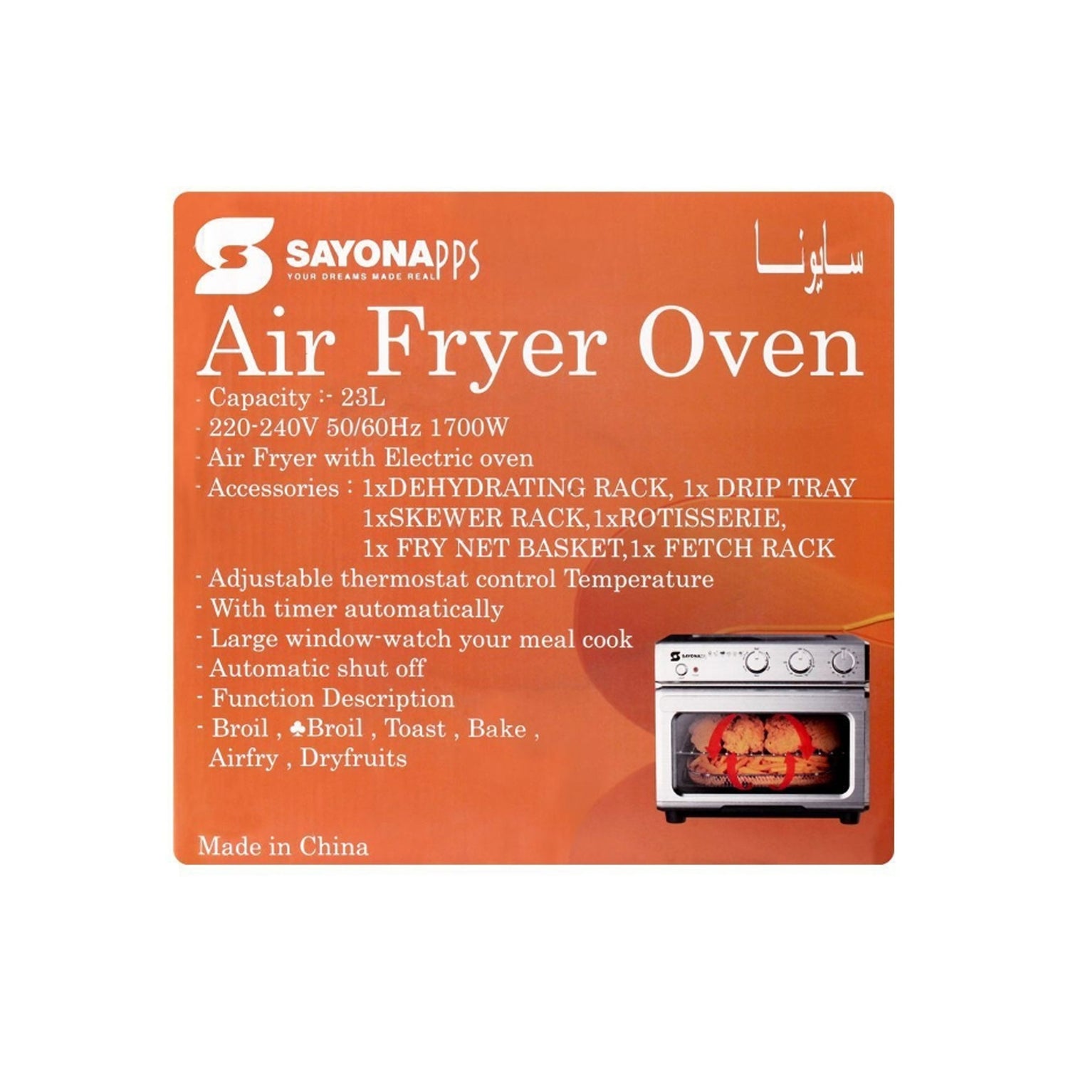 - ارتقِ بتجربة الطهي مع سايونا SAO-4353 فرن القلي الكهربائي بالهواء — قوة 1700 واط وسعة كبيرة 23 لتر.