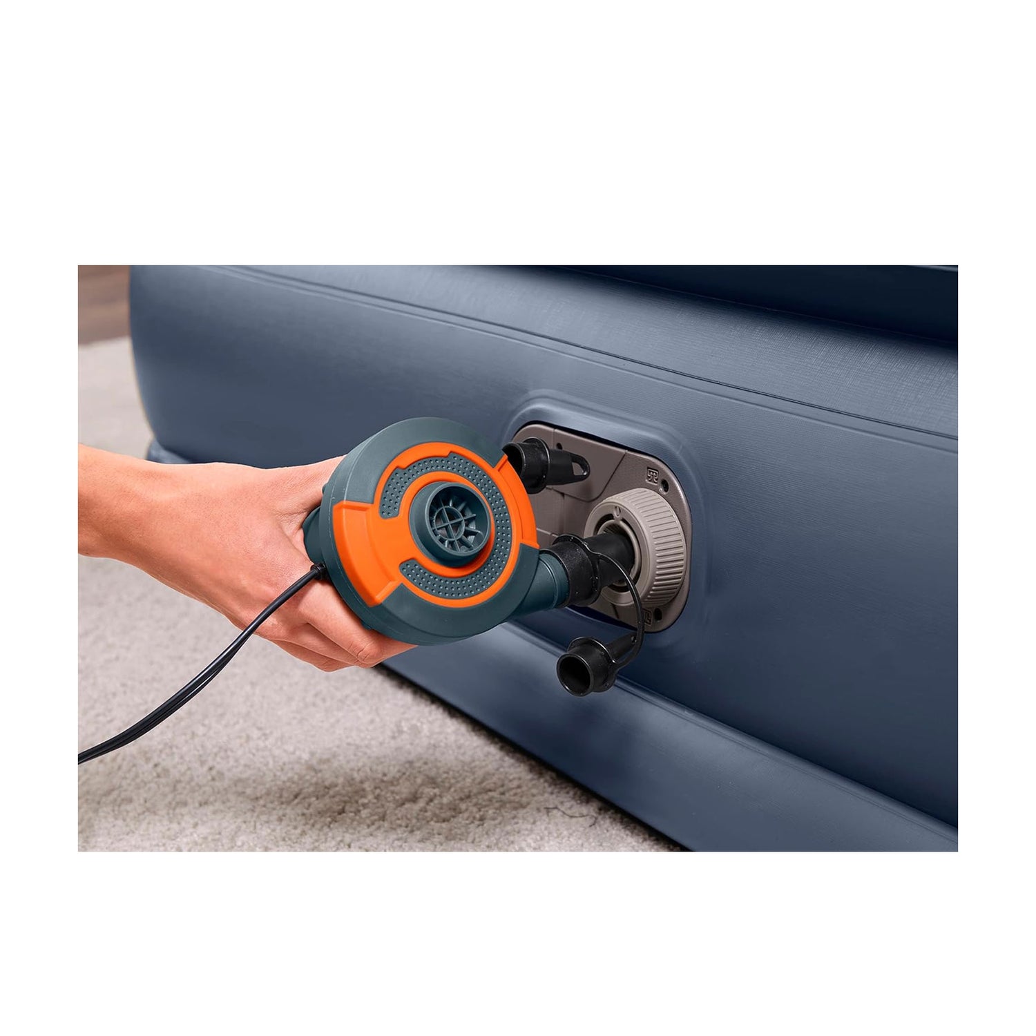 - المحتويات: مرتبة هوائية، حقيبة تخزين، رقعة إصلاح، مضخة مدمجة (220V–240V)