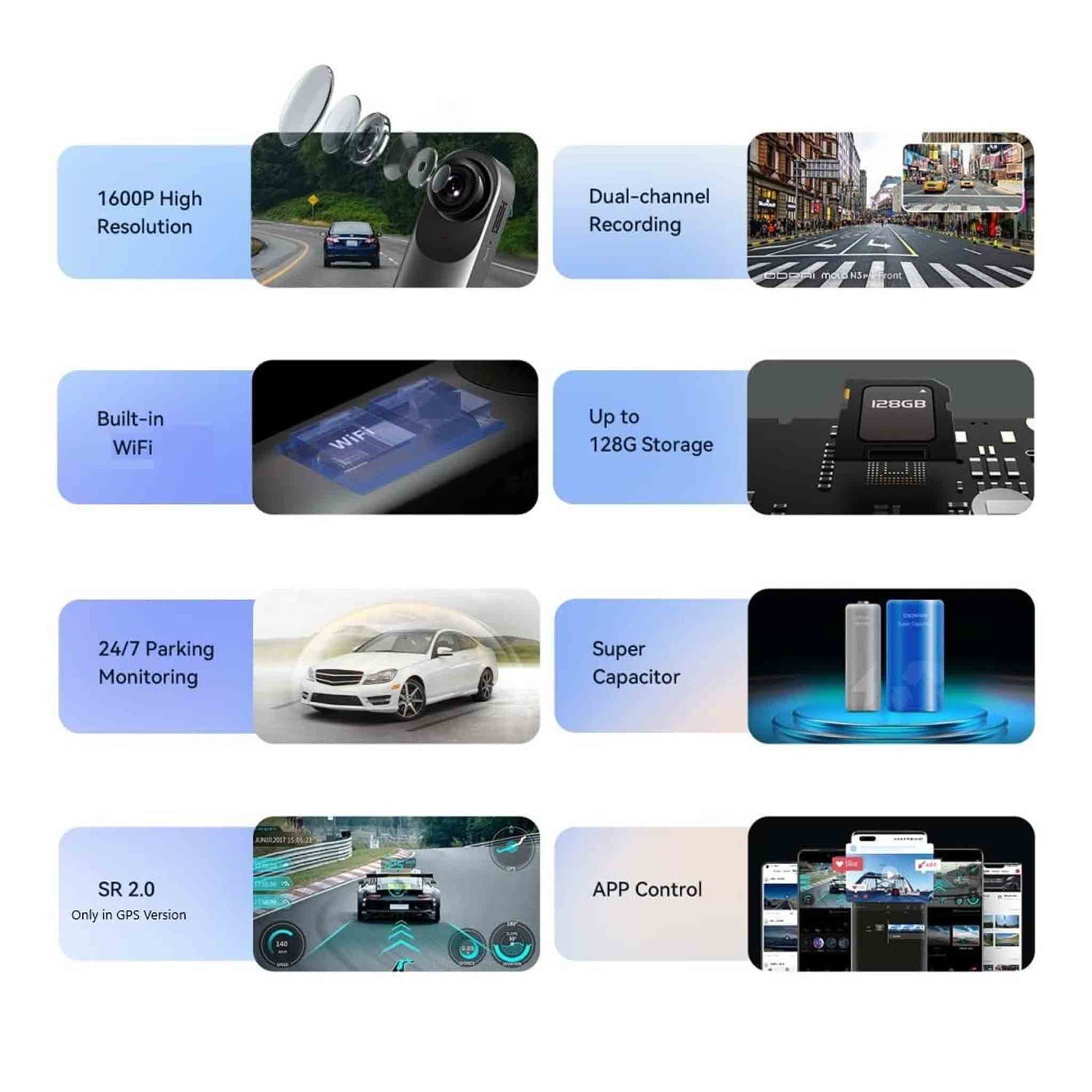- حافظ على سلامتك على الطريق بتسجيل فيديو بجودة عالية يحاكي أدق تفاصيل الرحلة. المواصفات: - كاميرا بدقة 2560*1600 (Ultra HD) بزاوية واسعة 140 درجة مع معالج رؤية ليلية متطور. تتحمل حرارة تصل إلى 70 درجة مئوية / 158 درجة فهرنهايت، سهلة التركيب داخل السيارة وتوجيهها إما نحو الخارج (لمراقبة الطريق) أو نحو الداخل (لتسجيل سلوك السائق والركاب)
