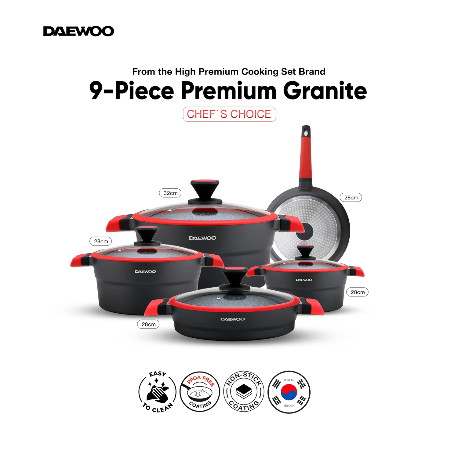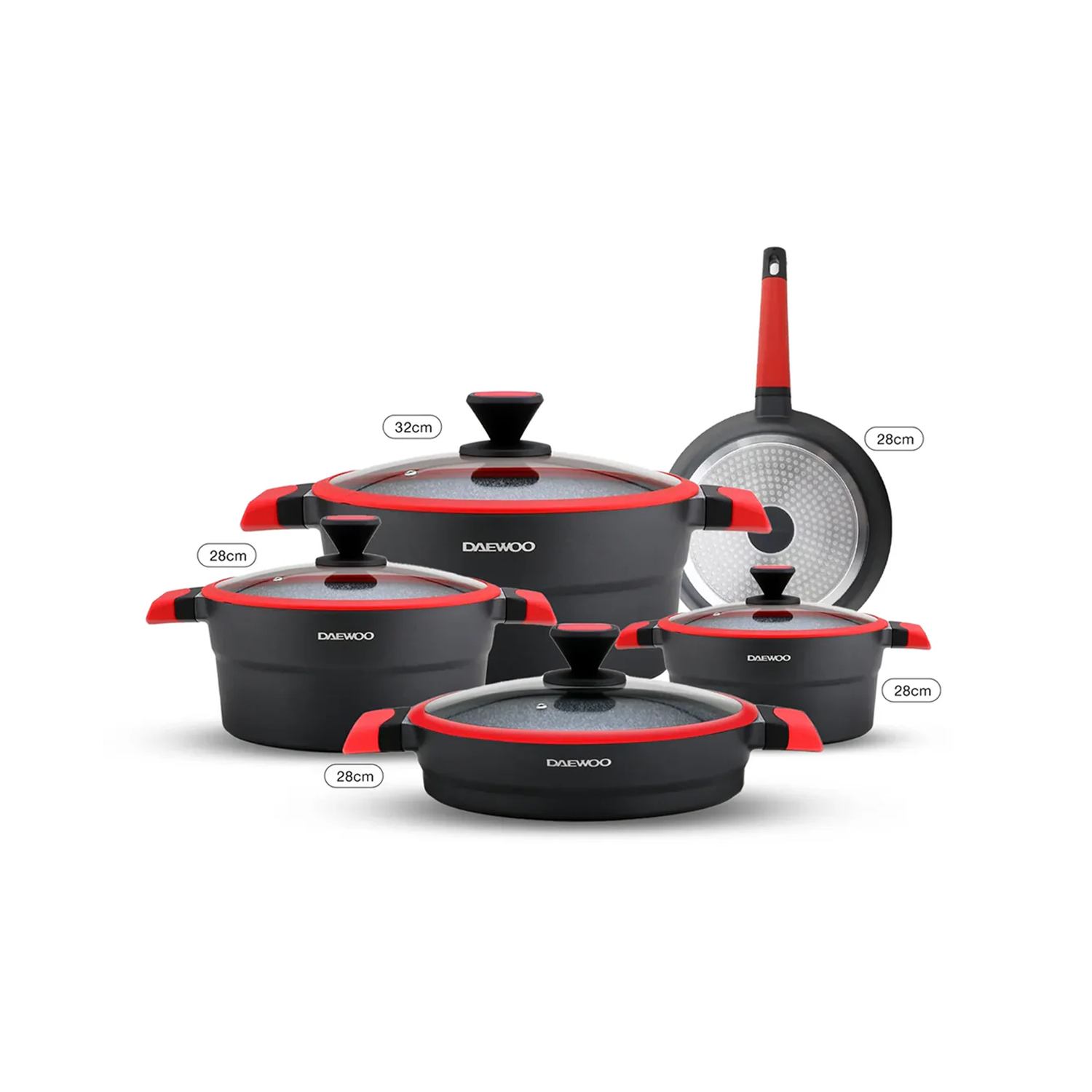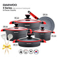 دايو تي إس سيريز مجموعة أواني طهي المطلية بالجرانيت غير اللاصقة مكونة من 9 قطع - أسود وأحمر