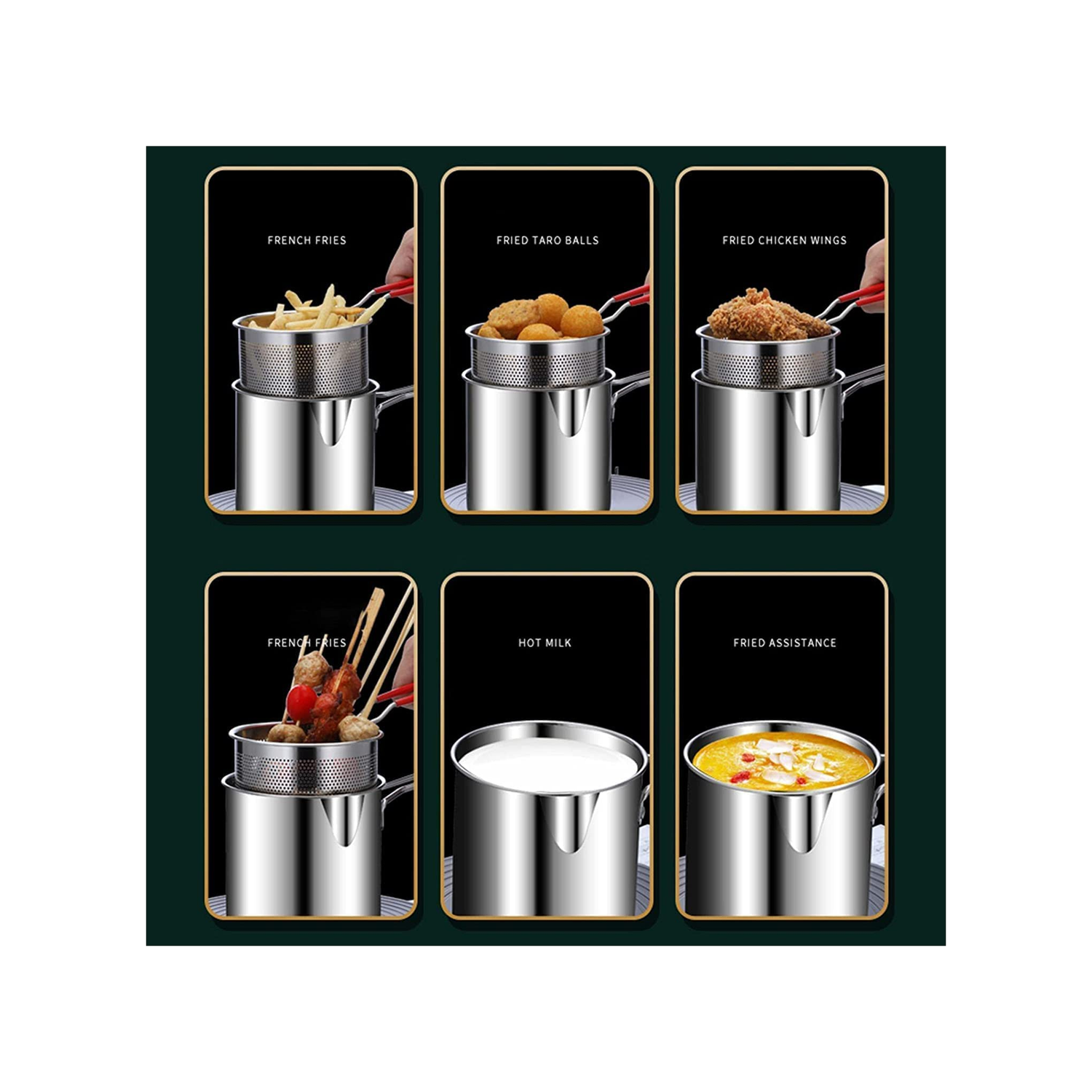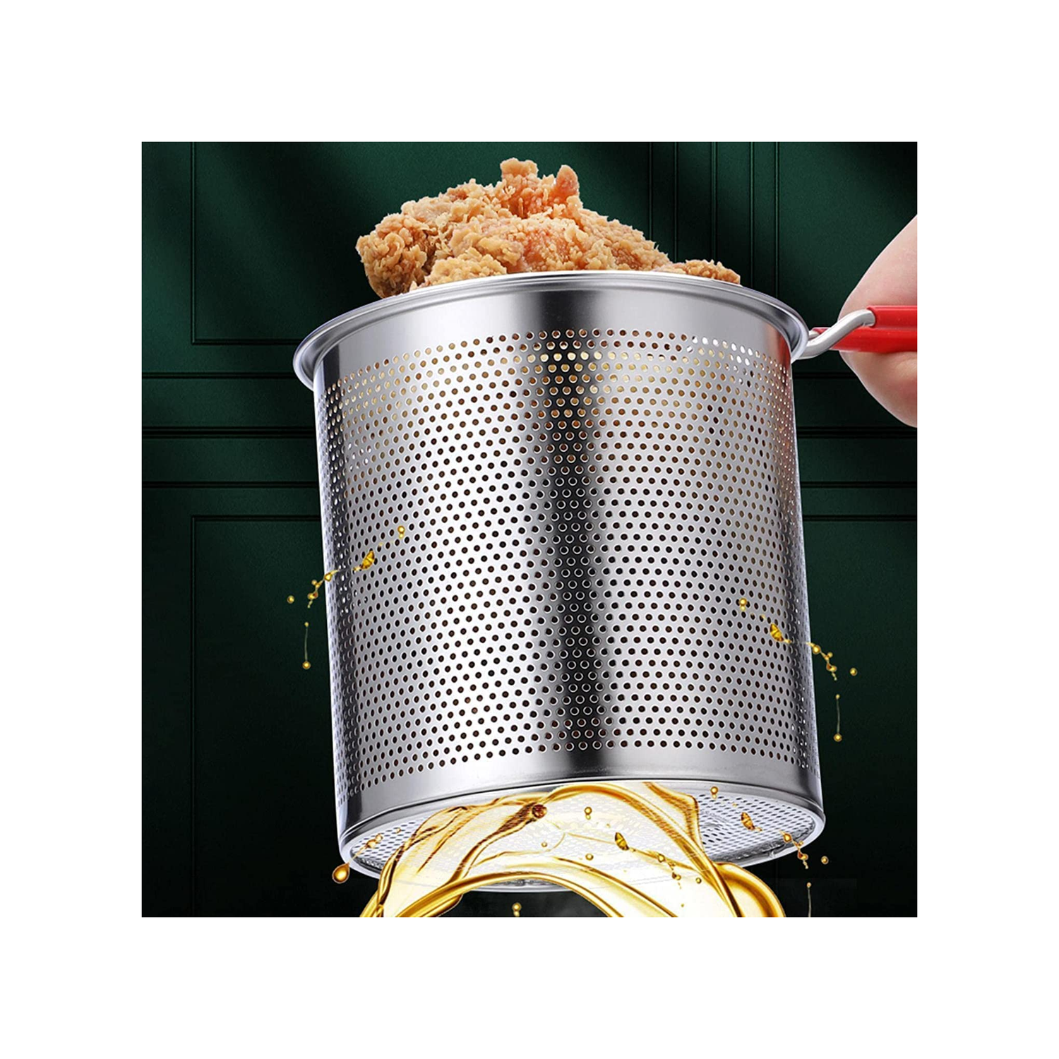 تصميم فريد: إذا كنت تبحث عن سلة مصفاة للقلي العميق مثالية، فهذا القلاية العميقة هو الخيار الأفضل لك. يتميز القدر بشكل دائري مع شبكة دقيقة صغيرة. الشكل الدائري مع الغطاء القابل للإزالة يسهل الاستخدام والتنظيف. الشبكة الدقيقة تساعد في تصريف الزيت والماء من الأطعمة المقلية مثل البطاطس المقلية، المعكرونة، والزلابية.