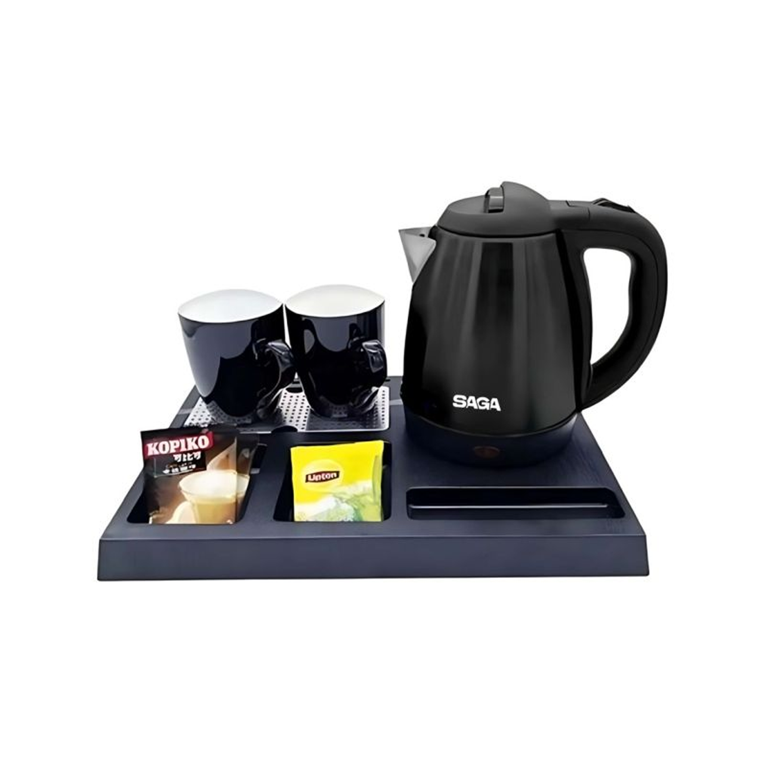 ساجا طقم غلاية كهربائية 1350 واط مع صينية وكوبين – أسود