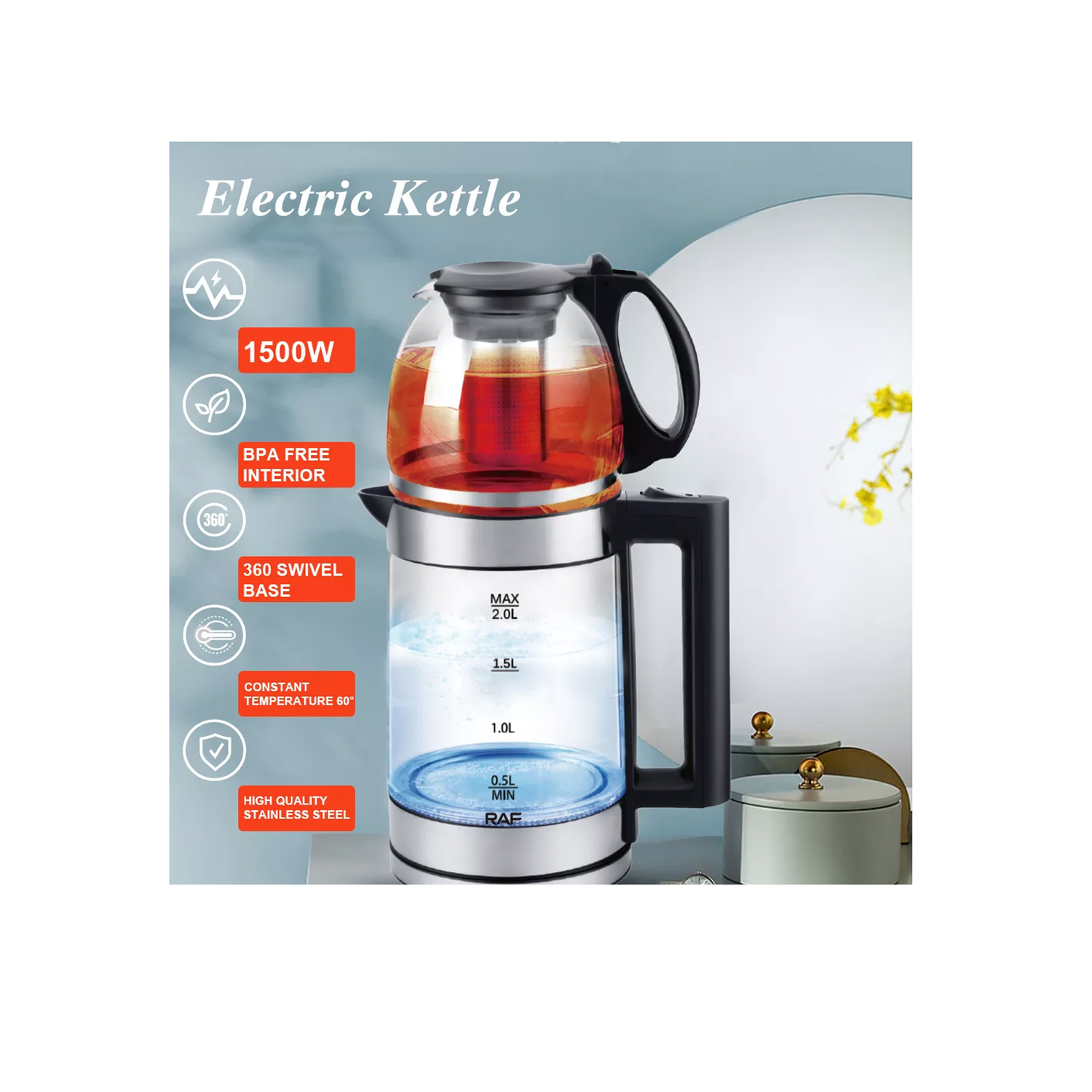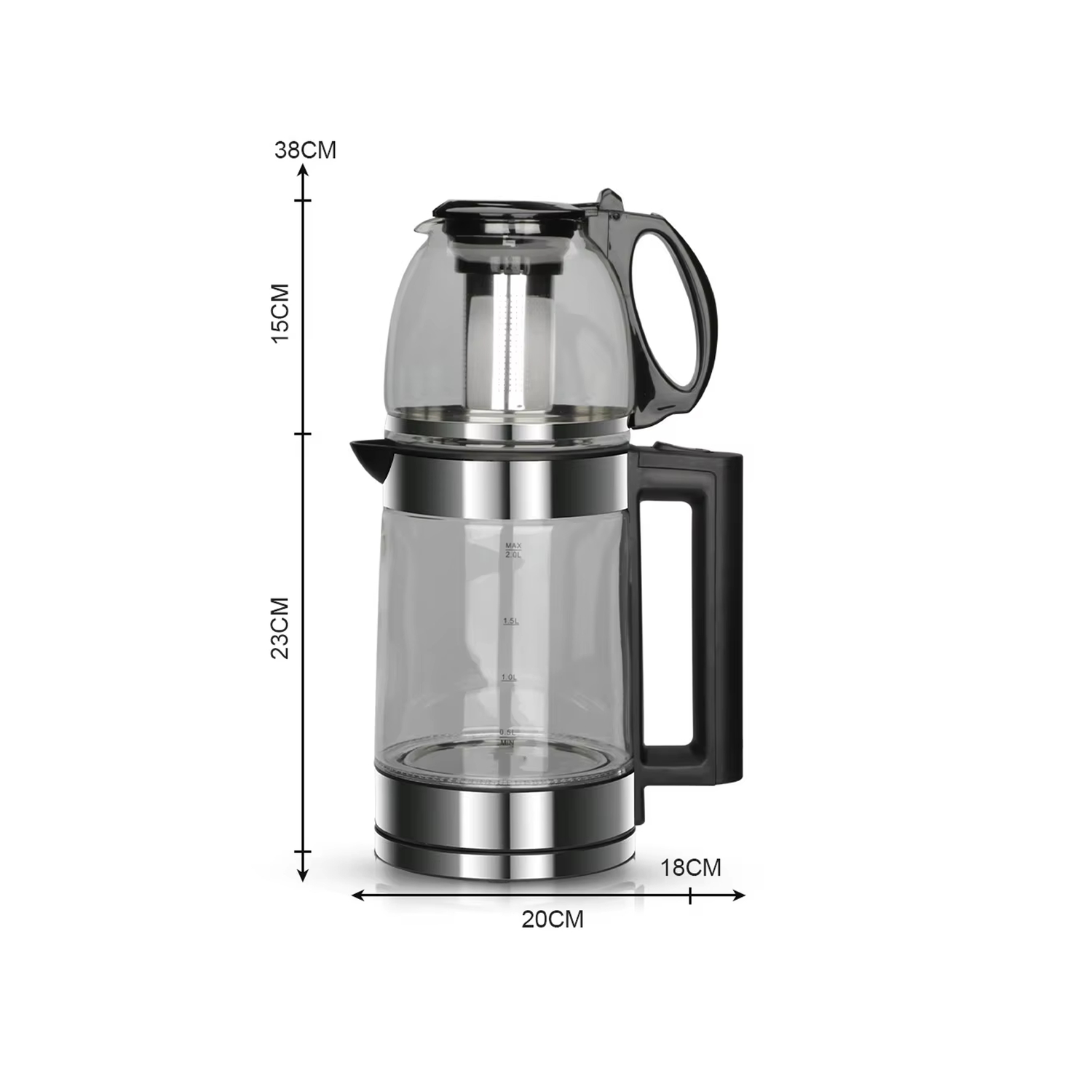 - السعة: 0.8 لتر (إبريق الشاي) + 2 لتر (غلاية الماء).