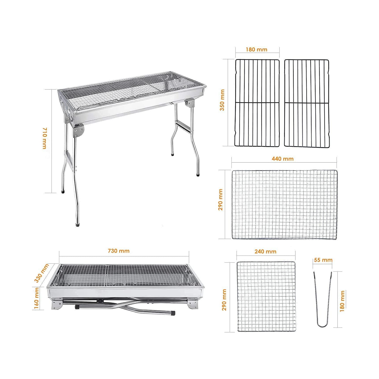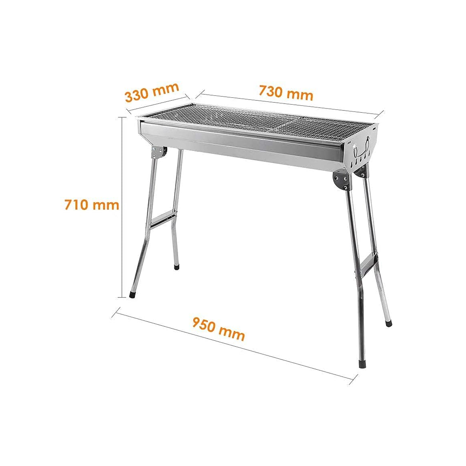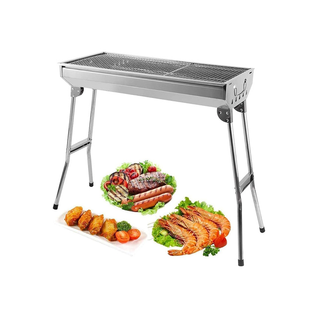 - سهل التجميع والحمل: يمكن تجميع الشواية أو فكها خلال دقائق قليلة فقط. المقابض الجانبية تتيح حملها بسهولة، بينما توفر الأرجل الأربع غير القابلة للانزلاق ثباتًا قويًا حتى على الأسطح غير المستوية مثل العشب أو أرض المخيمات.