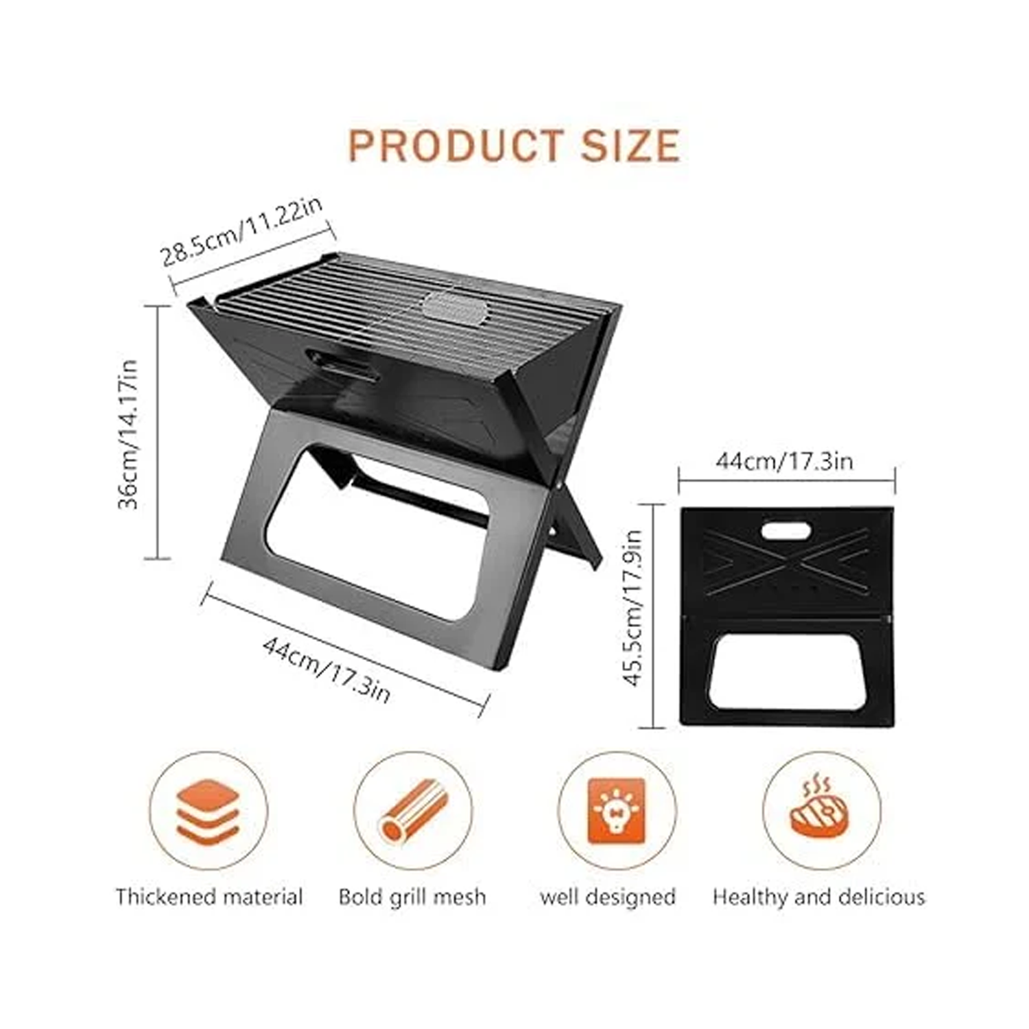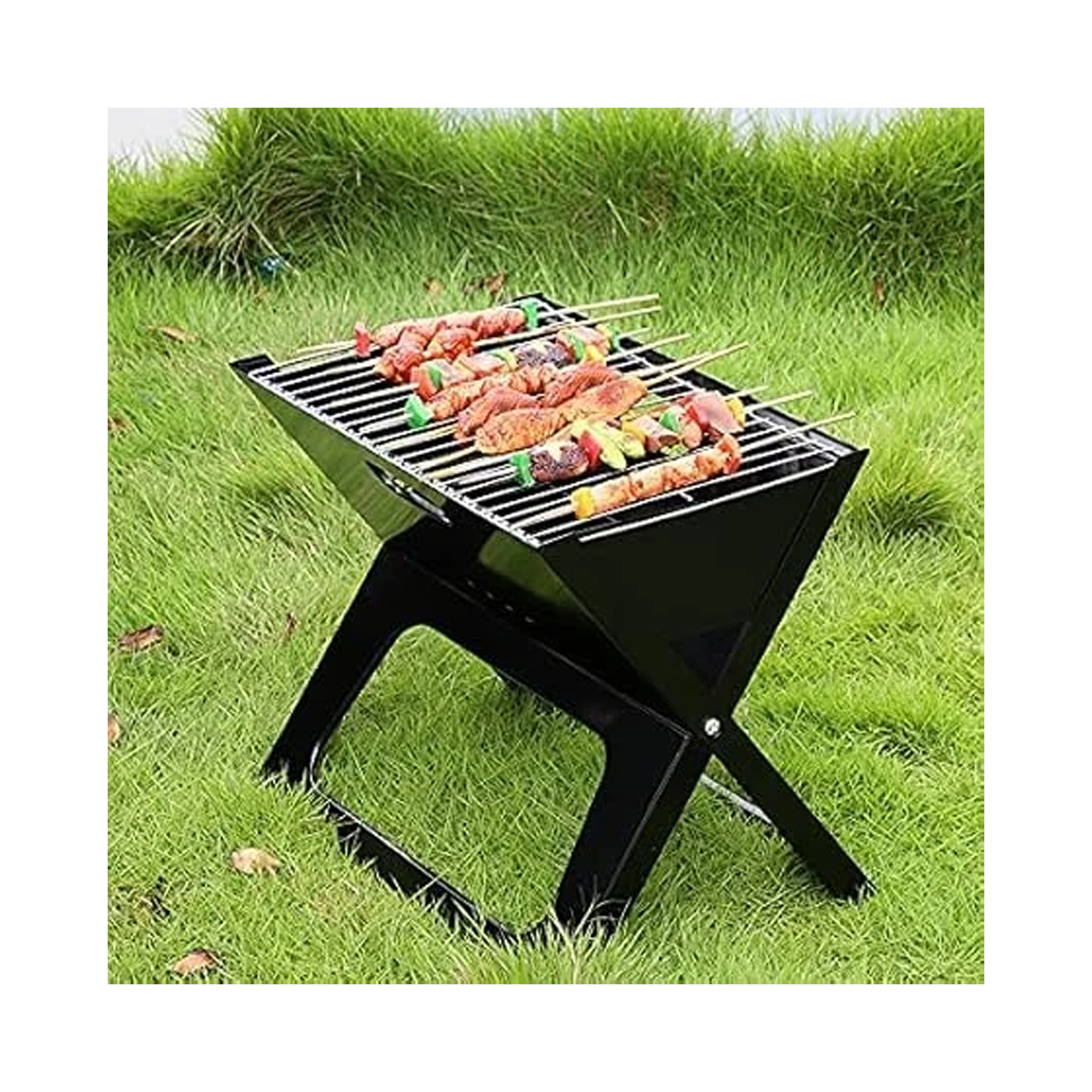 شواية فحم قابلة للطي: إعداد بسيط بخطوتين يجعل هذه الشواية المحمولة مثالية للشواء أثناء التنقل؛ عند فتحها، تشكل دعمًا مثلثيًا على الأرض لضمان الثبات أثناء الاستخدام
