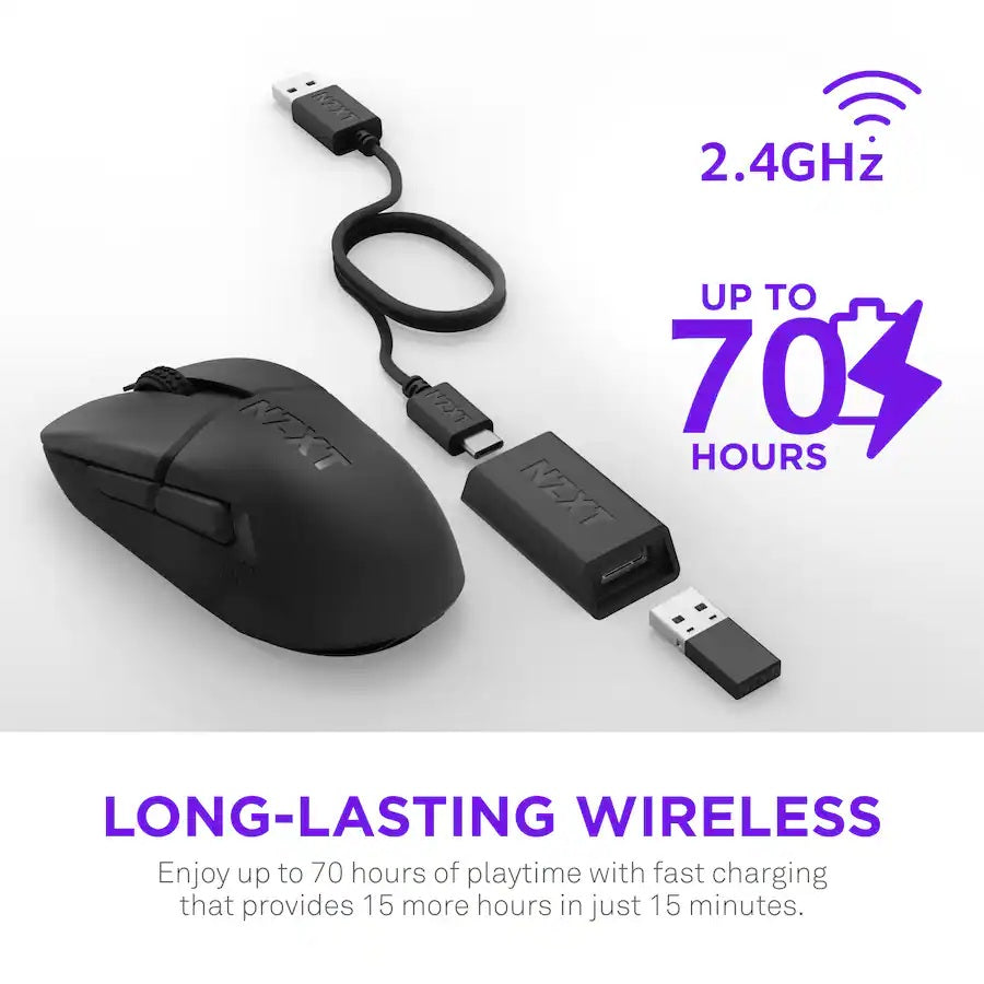 بطارية طويلة العمر: تصل إلى 70 ساعة* من الاستخدام بشحنة واحدة، مع شحن سريع لأكثر من 15 ساعة إضافية للعب خلال 15 دقيقة فقط. *تم اختبار عمر البطارية عند معدل استدعاء 1,000 هرتز، قد يقل العمر عند معدلات أعلى.