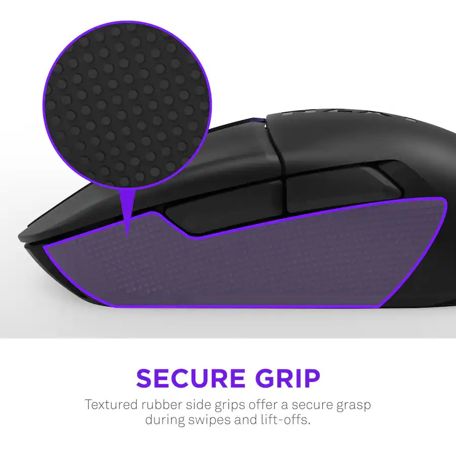 قبضة آمنة: مقابض جانبية من المطاط الملمس توفر قبضة آمنة ومريحة، مع شريط قبضة اختياري للأزرار اليمنى واليسرى.