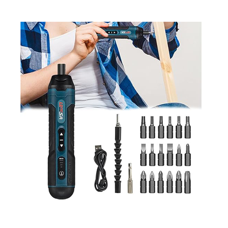 مجموعة مفك براغي كهربائي لاسلكي 3.6 فولت مع 14 رأس ومقبض دوّار