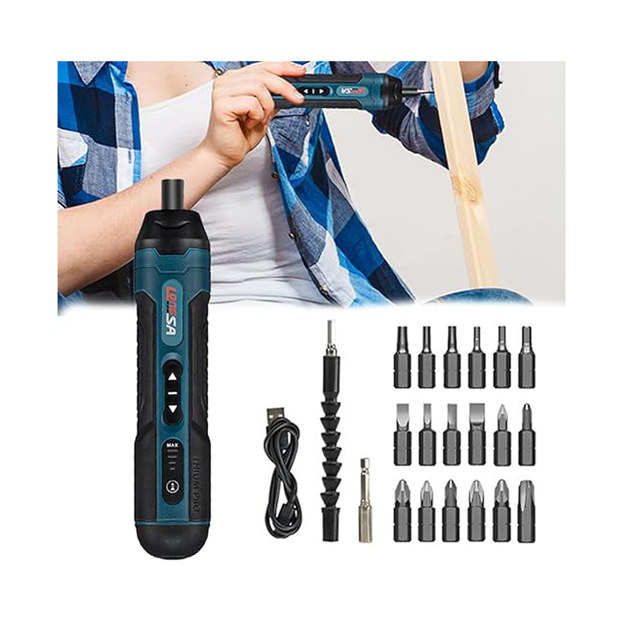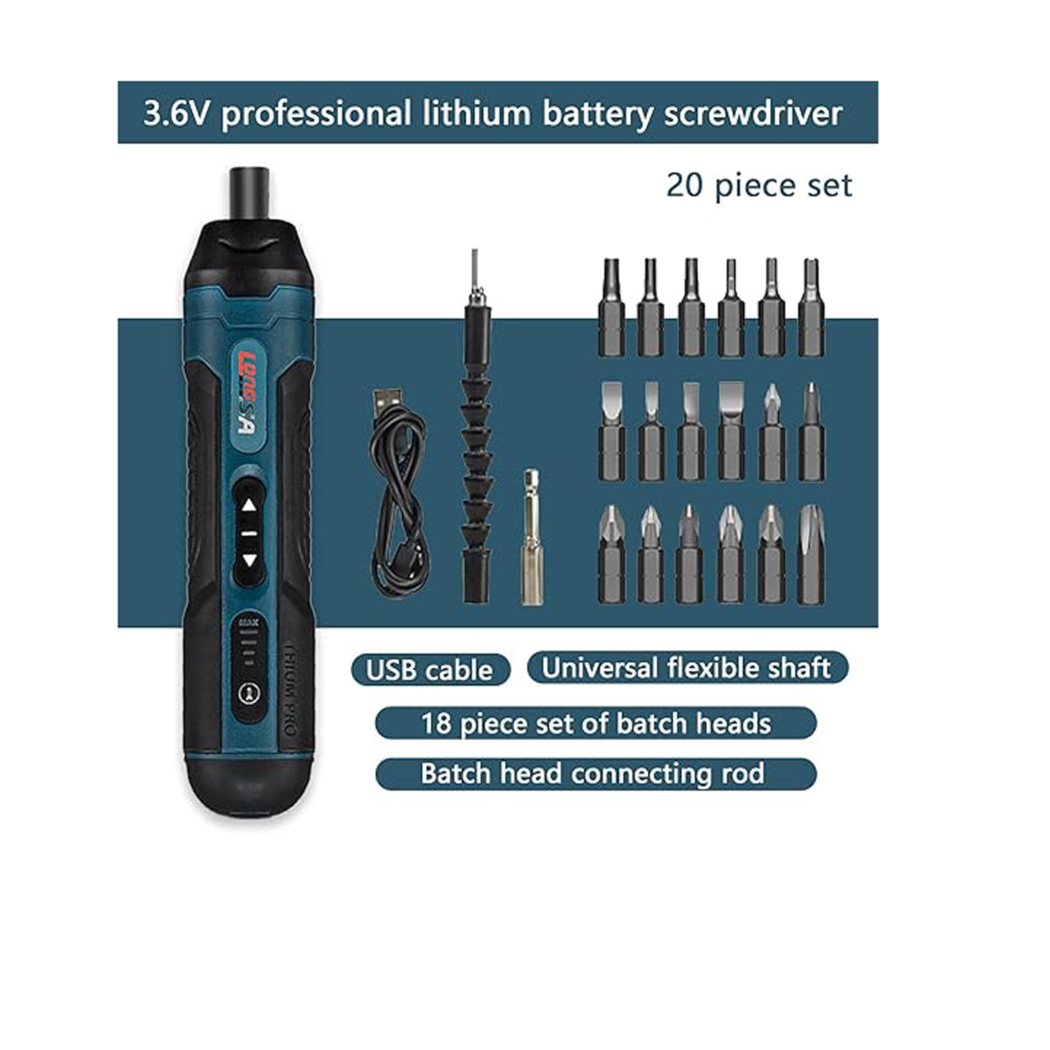 - النوع: مجموعة مفكات كهربائية قابلة لإعادة الشحن.