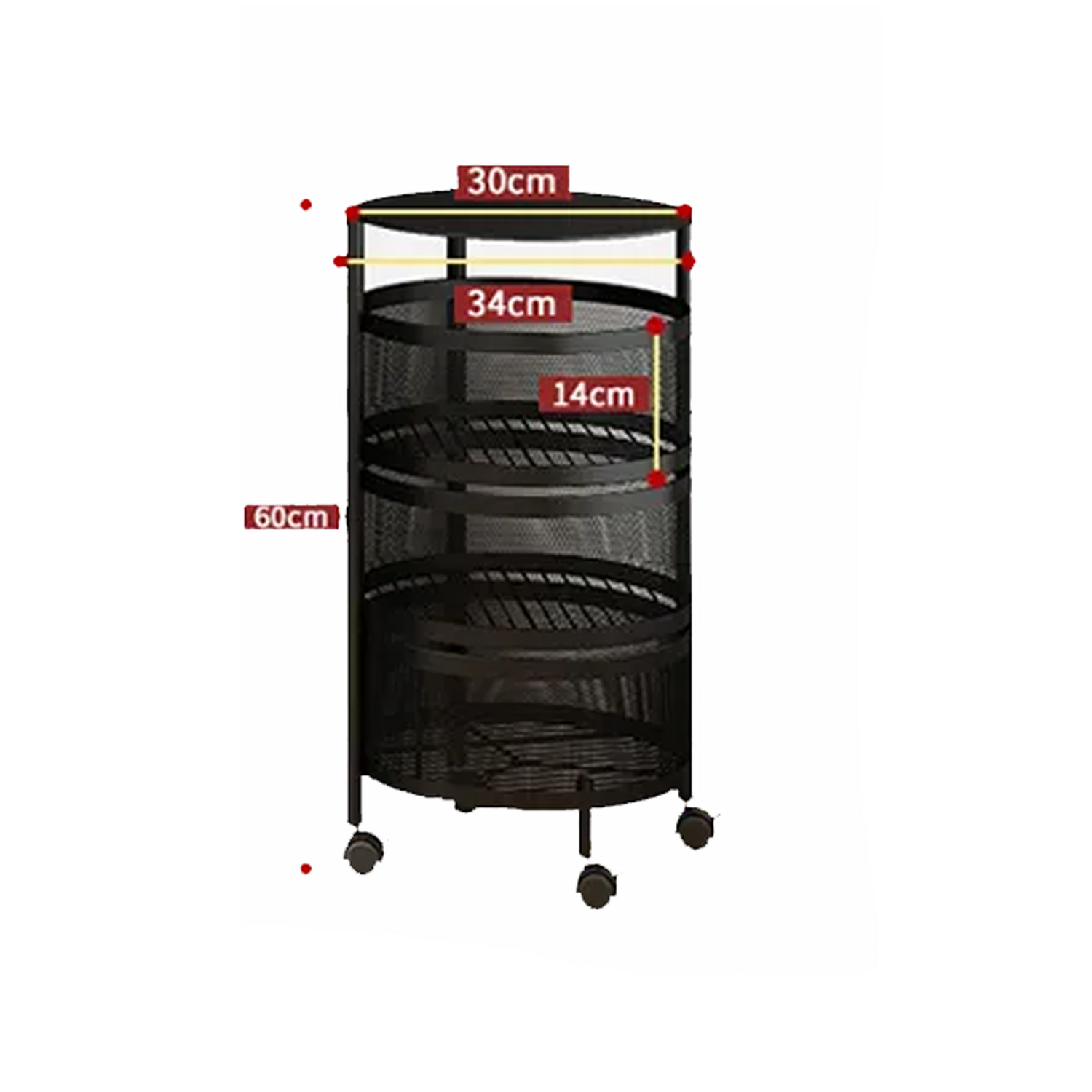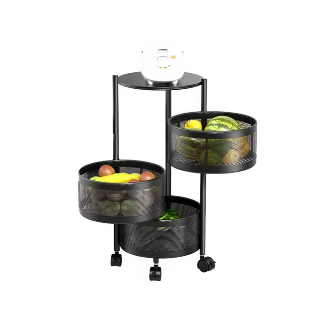 - رف تخزين معدني دائري متعدد الطبقات للمطبخ مع أرفف دوارة وعجلات.