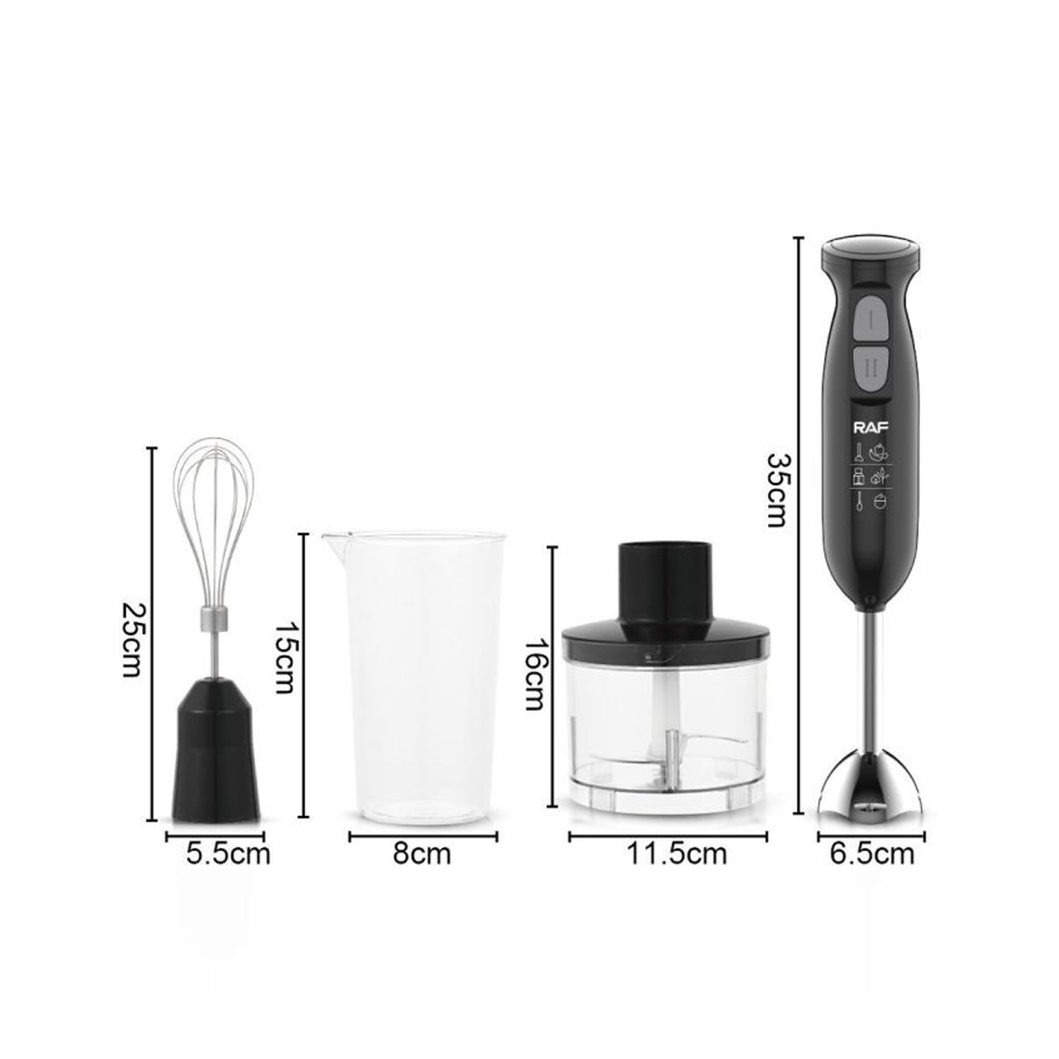 - خلاط يدوي متعدد الوظائف 4 في 1 من RAF: خلاط، فرم، خفّاق، ومُزيج