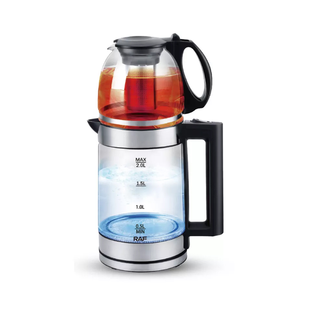 - السعة: 0.8 لتر (إبريق الشاي) + 2 لتر (غلاية الماء).
