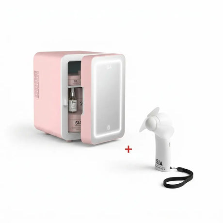 السعر العادي 55.000 KDUnit price /غير متاحسيا ثلاجة صغيرة سعة 4 لترات مع إضاءة LED - وردي + مروحة LED بنمط زهرة الفريزيا