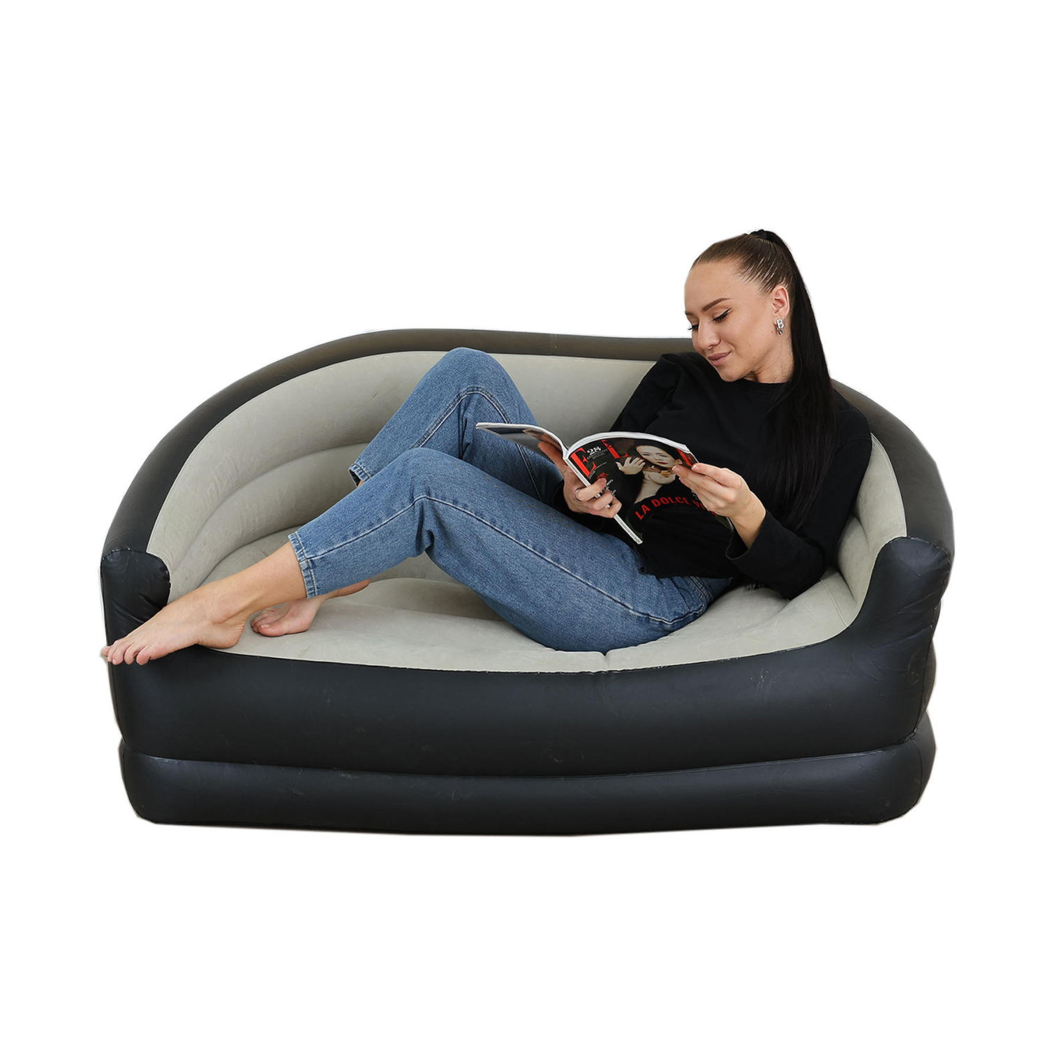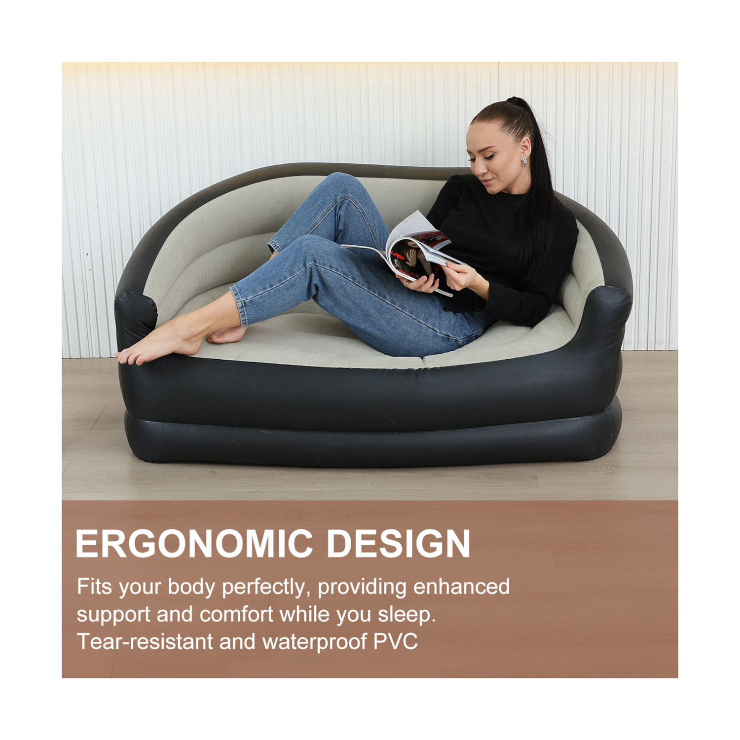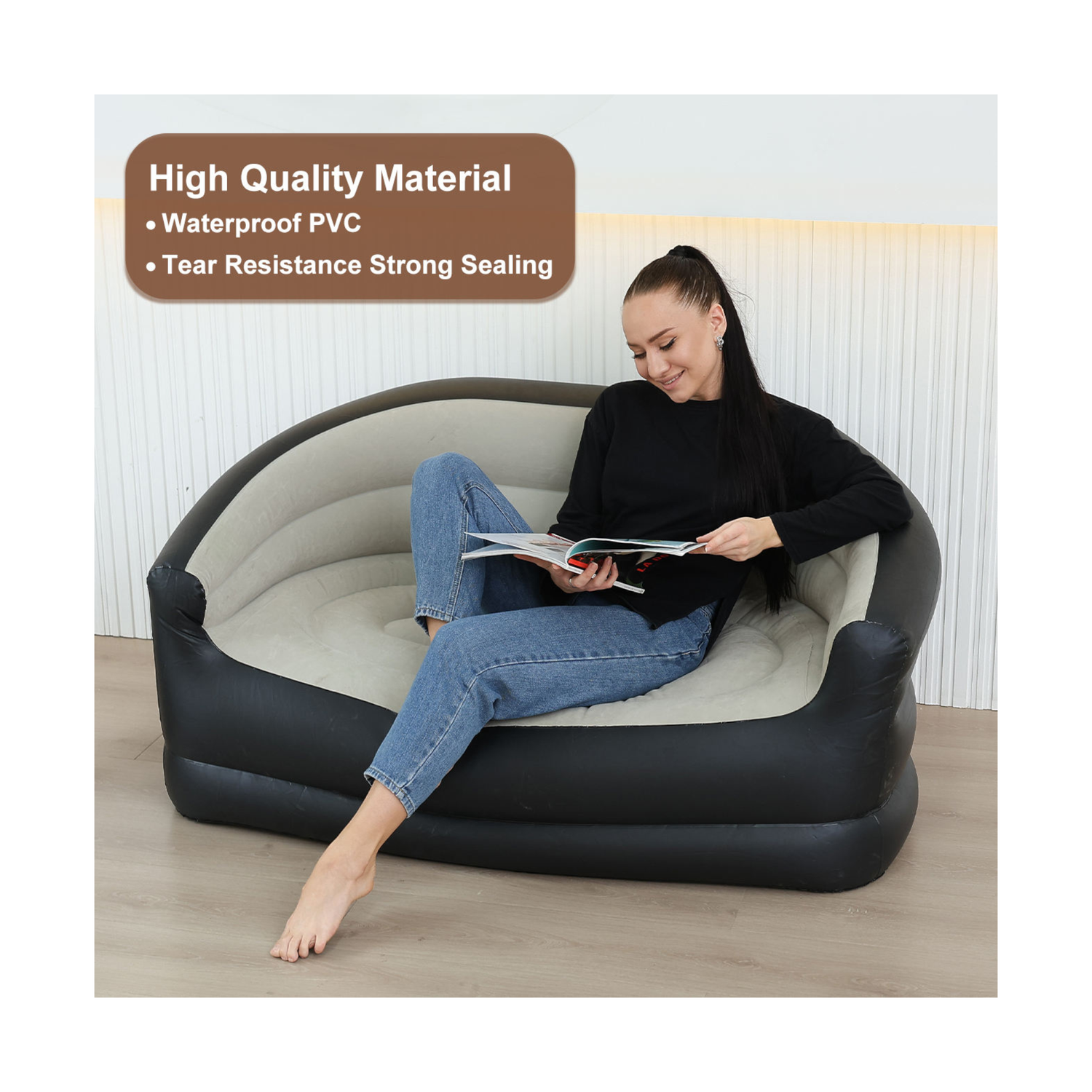 استرخِ في أي مكان مع طقم الكرسي الهوائي والعتبة القابلة للنفخ. تم تصميمه ليمنحك الراحة والمتانة، ويأتي بمقعد مغطى بقماش مخملي ناعم، لطيف على البشرة وسهل التنظيف. يتحمّل وزنًا يصل إلى 300 رطل (136 كجم) بفضل خامة الفينيل PVC القوية، مما يجعله مناسبًا لمختلف الأعمار. التصميم المريح يدعم الظهر والساقين، ما يجعله مثاليًا للجلوس لفترات طويلة أثناء اللعب، مشاهدة الأفلام أو التخييم. يُنفخ بسرعة، يُطوى بسهولة، ويحتوي على قواعد شفط مانعة للانزلاق لتثبيت آمن داخل المنزل. استخدمه في غرفة المعيشة، أو على الشرفة، أو أثناء التنقل – لم تكن الراحة بهذا القدر من السهولة من قبل.