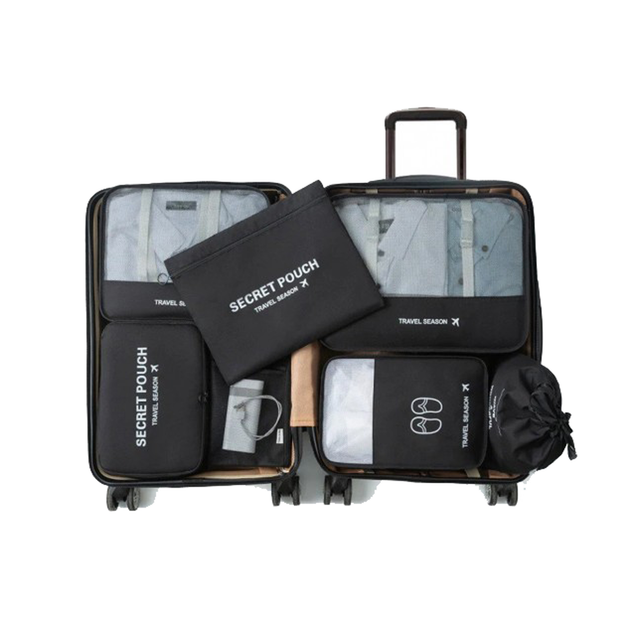 طقم 7 حقائب تنظيم شنط السفر خفيفة الوزن وقابلة للطي - أسود
