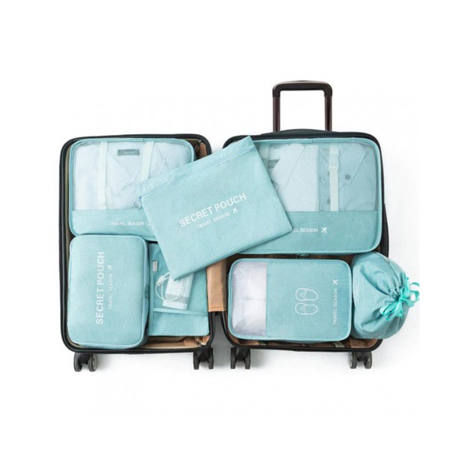 - المحتويات: يضم هذا الطقم 2 حقيبة سفر صغيرة للملابس، 1 حقيبة خاصة بالملابس الداخلية، 2 حقيبة برباط مقاومة للماء، 1 حقيبة مكياج أنيقة على شكل دلو مزودة بجيوب شبكية، 1 حقيبة تنظيم أسلاك مزودة بأشرطة مرنة للإلكترونيات، بالإضافة إلى حقيبة صغيرة للجوارب أو النقود أو المفاتيح.