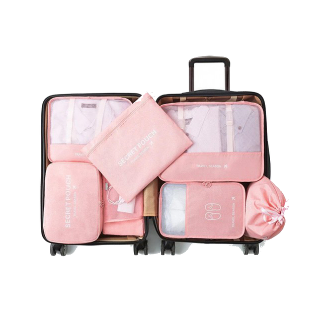 - المحتويات: يضم هذا الطقم 2 حقيبة سفر صغيرة للملابس، 1 حقيبة خاصة بالملابس الداخلية، 2 حقيبة برباط مقاومة للماء، 1 حقيبة مكياج أنيقة على شكل دلو مزودة بجيوب شبكية، 1 حقيبة تنظيم أسلاك مزودة بأشرطة مرنة للإلكترونيات، بالإضافة إلى حقيبة صغيرة للجوارب أو النقود أو المفاتيح.