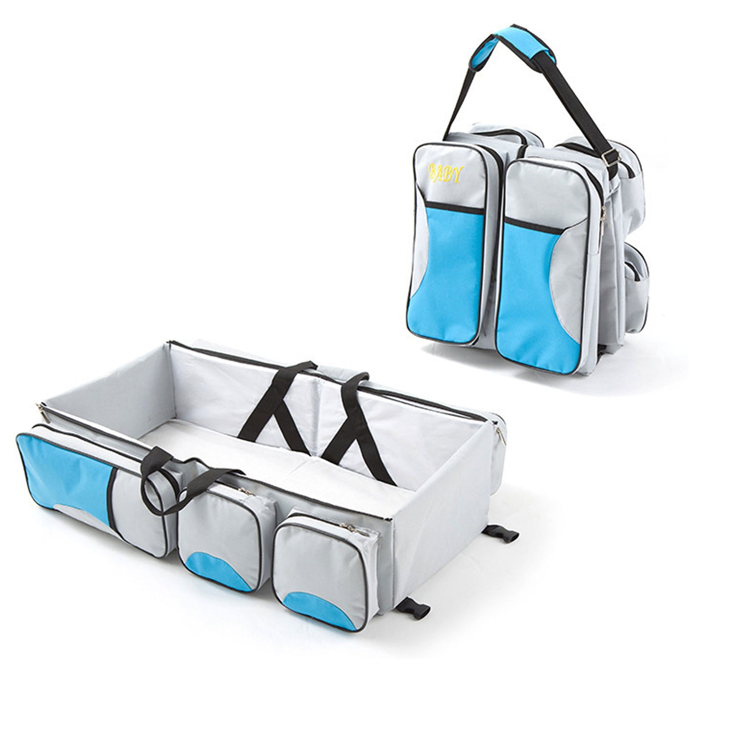 - تصميم 3 في 1: حقيبة حفاضات، سرير سفر، محطة تغيير