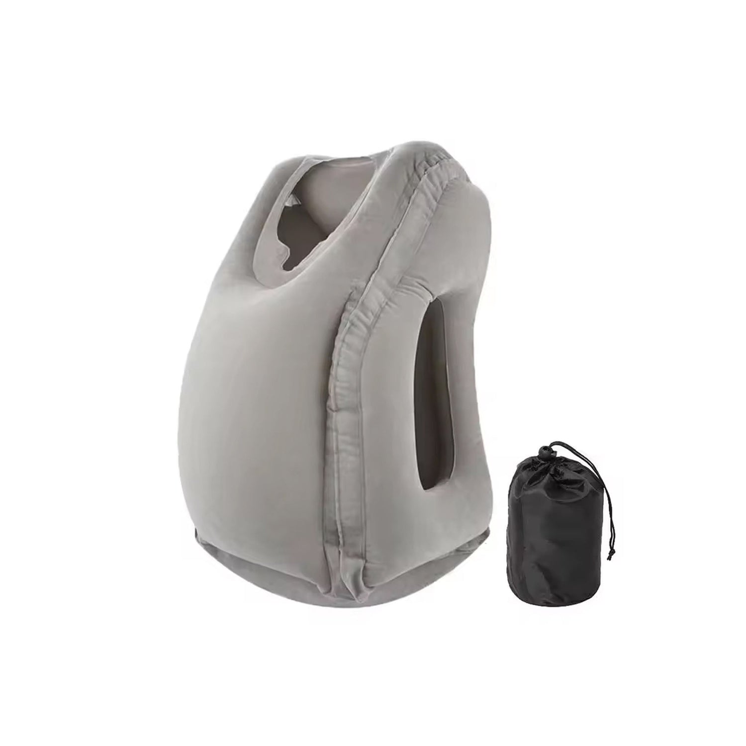 - وسادة سفر قابلة للنفخ للرقبة والرأس - رمادي