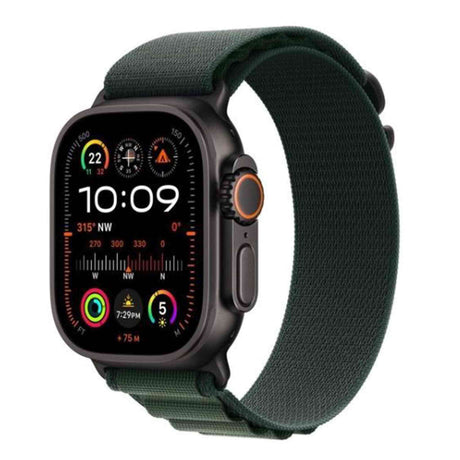 ساعة آبل ألترا 2 GPS + خلوية 49 مم علبة تيتانيوم سوداء - مع حلقة ألبين داكنة خضراء - متوسطة