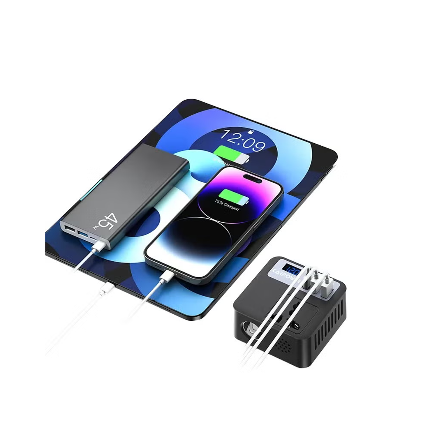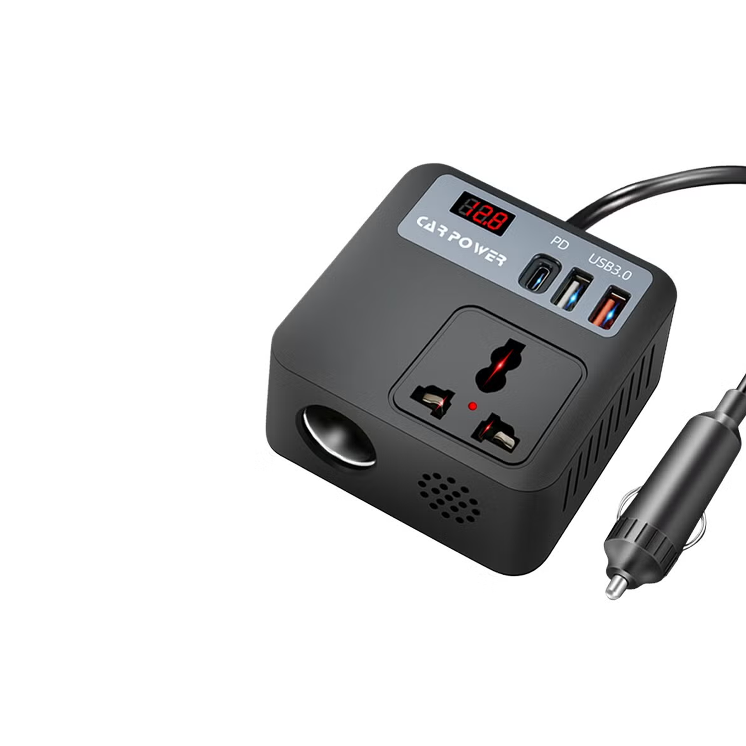 - محول طاقة للسيارة يوفر طاقة مستمرة من التيار المستمر (DC) إلى التيار المتردد (AC)، ويتميز بمقبسين 220 فولت AC مزدوجين و3 منافذ USB (2.4A USB + 1.2A USB)، حيث يمكن شحن الهواتف والأجهزة اللوحية في الوقت نفسه عبر المنافذ الثلاثة.