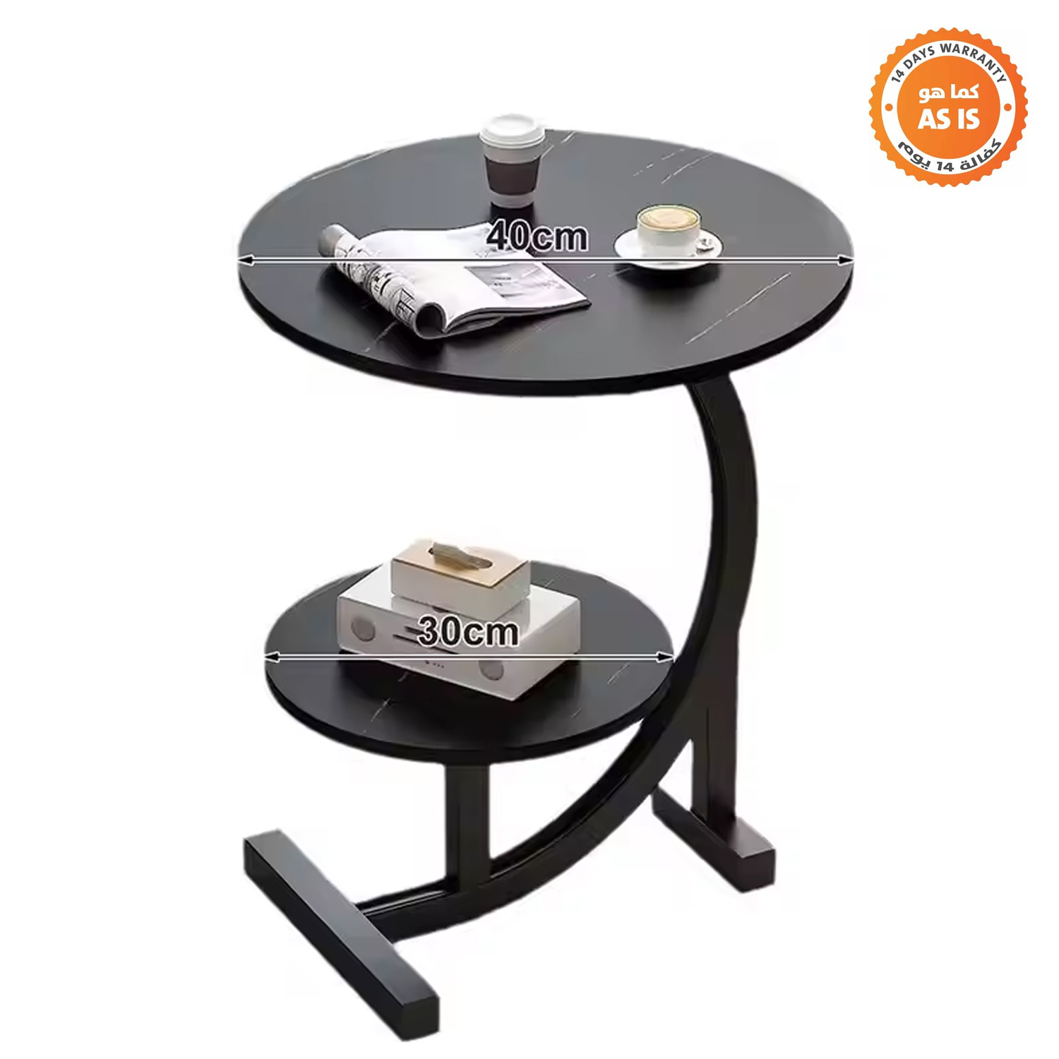طاولة جانبية دائرية حديثة بطبقتين على شكل حرف سي لغرفة المعيشة وغرفة النوم - أسود (صندوق تالف) - (كما هو)