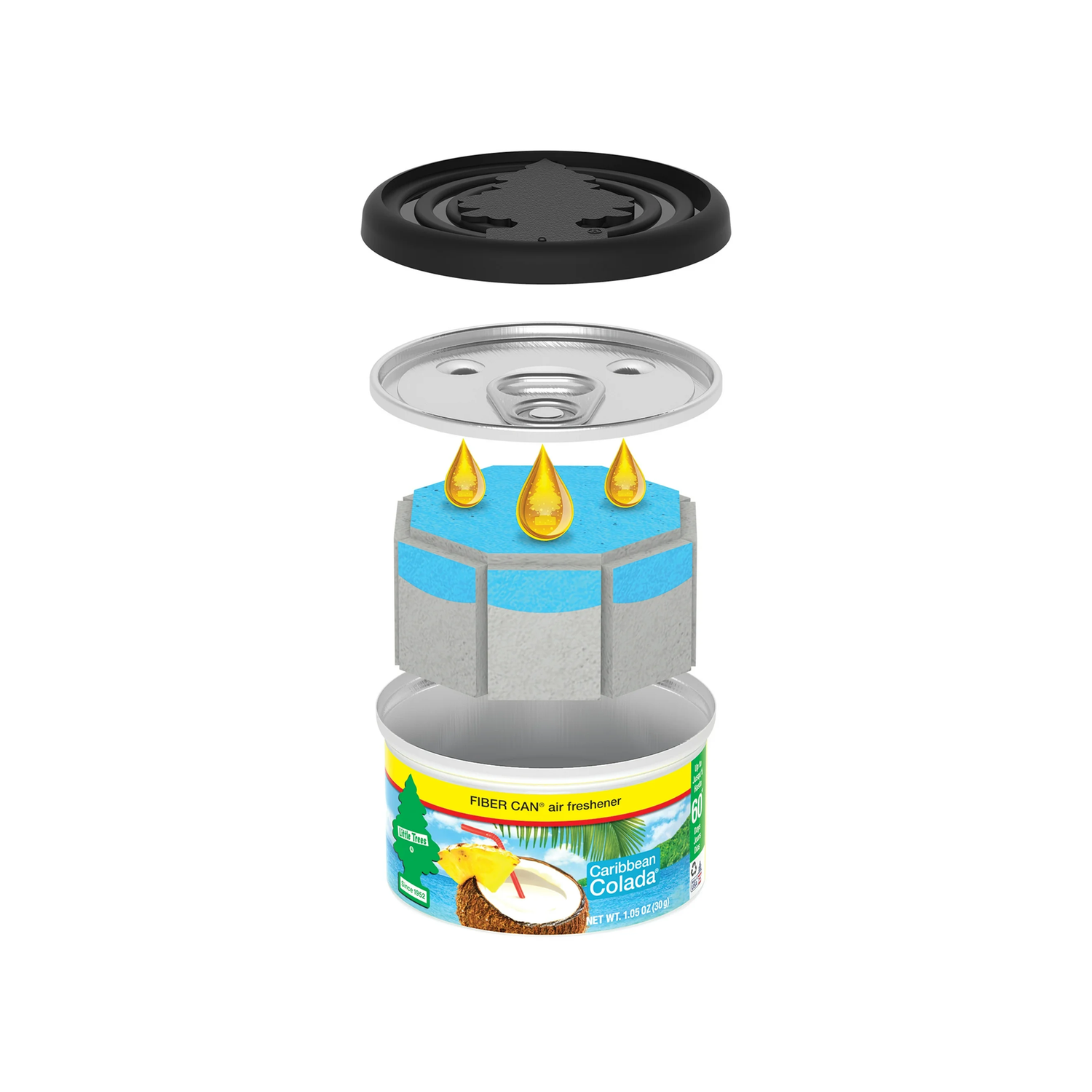 • Each Fiber Can is made from 50% recycled hanging Tree fiber, printed in vibrant colors that match the fragrance.