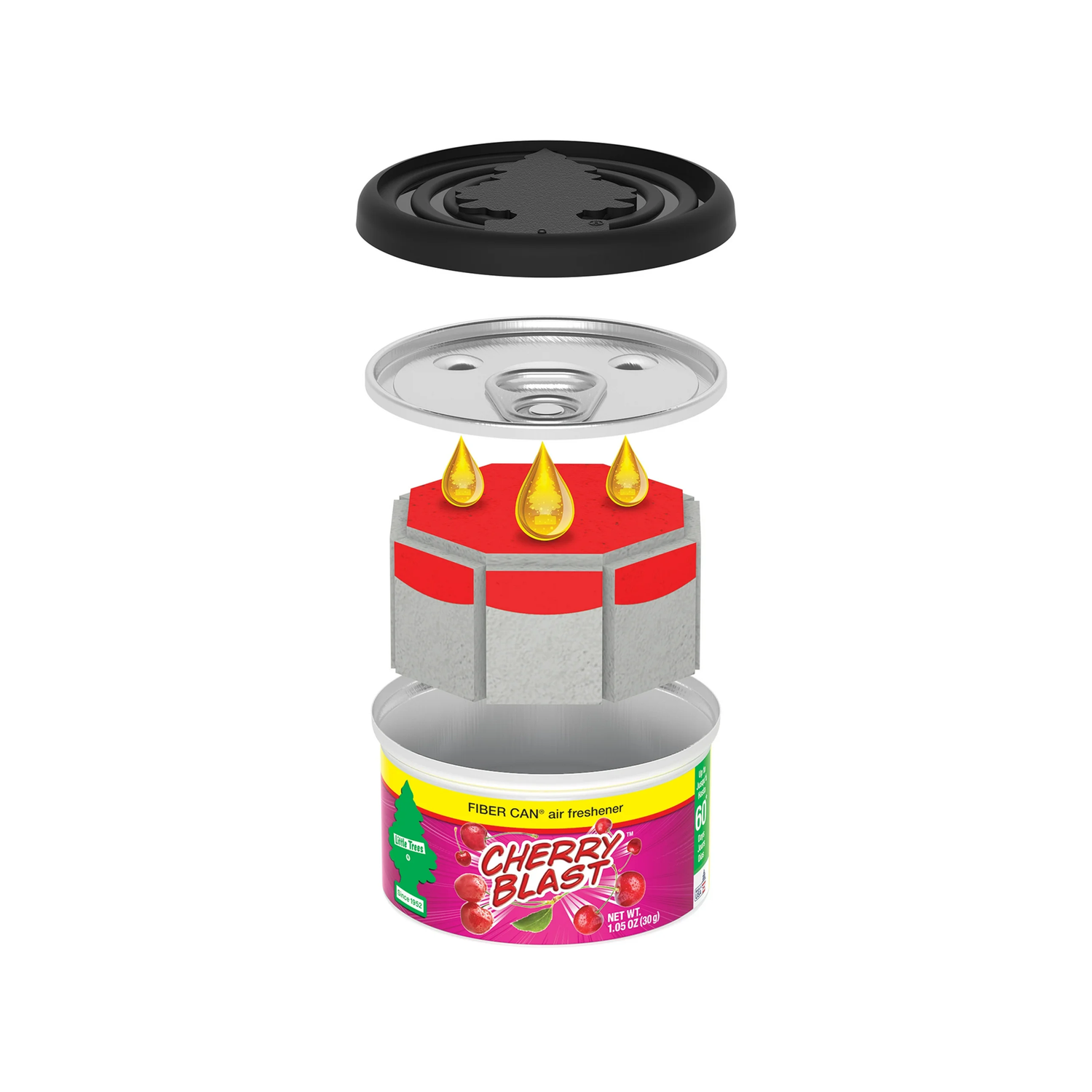 - Each Fiber Can is made from 50% recycled hanging Tree fiber, printed in vibrant colors that match the fragrance.