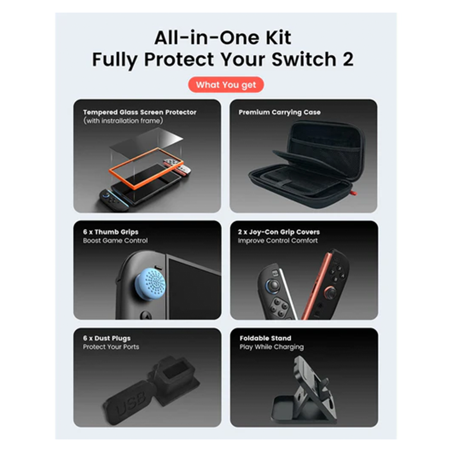 • Compatibility: Nintendo Switch 2, Joy-Con, Charging Cable, Game Cards, Foldable Stand, etc.