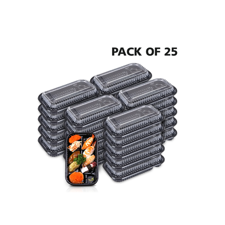 Sale price 0.750 KD Regular price 1.000 KDUnit price /Unavailable3-Compartment Disposable Plastic Food Container Box - 1000ml - 23.5 x 21 x 5.5 cm pack of 25