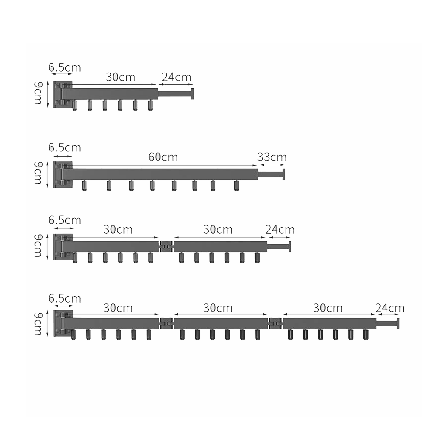 - Wall-mounted metal triple foldable clothes drying rack with extension rod