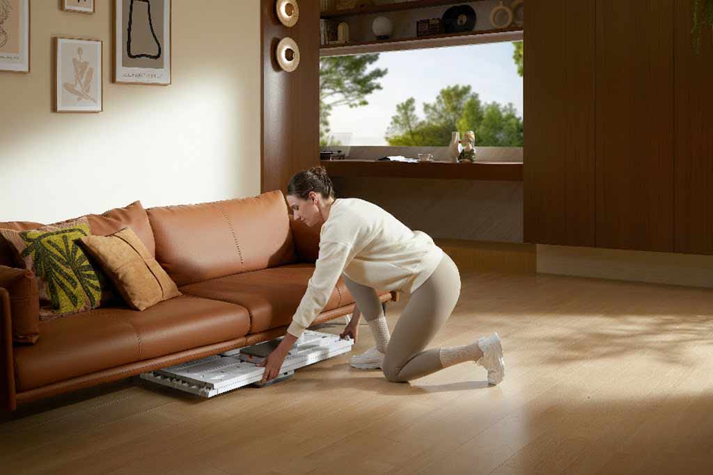 - Features a compact design that folds vertically, occupying less than 0.6 m² when stored
