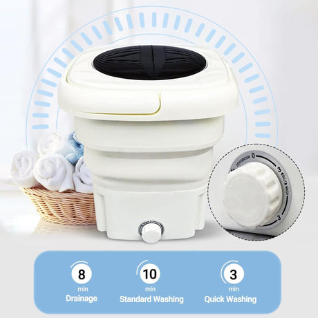 Foldable & Portable Mini Washing Machine With Spinner For Home & Travel - 10L Capacity