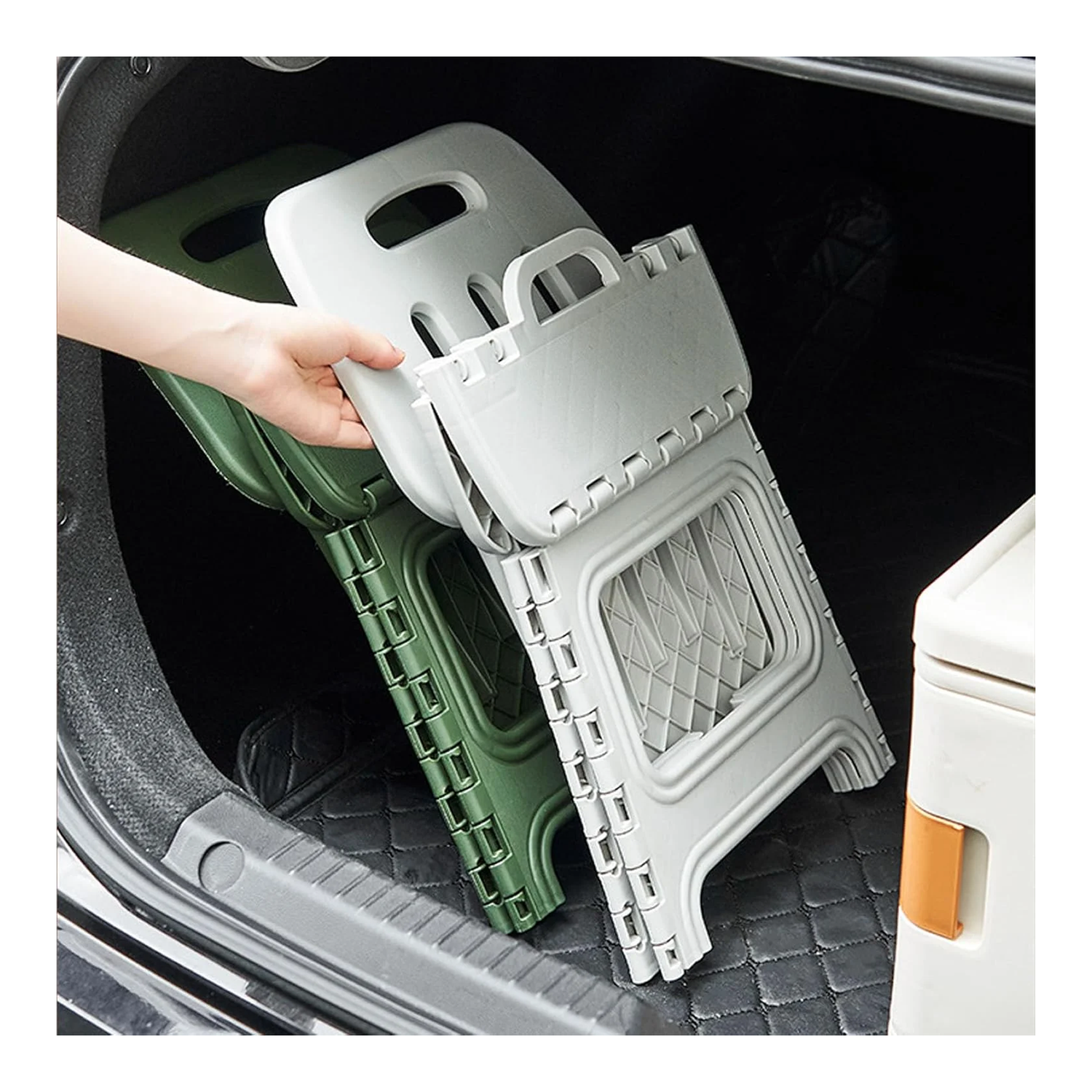 - PP Material: The folding step stool is made from heavy-duty PP plastic, ensuring sturdiness, stability, and long-lasting safety.