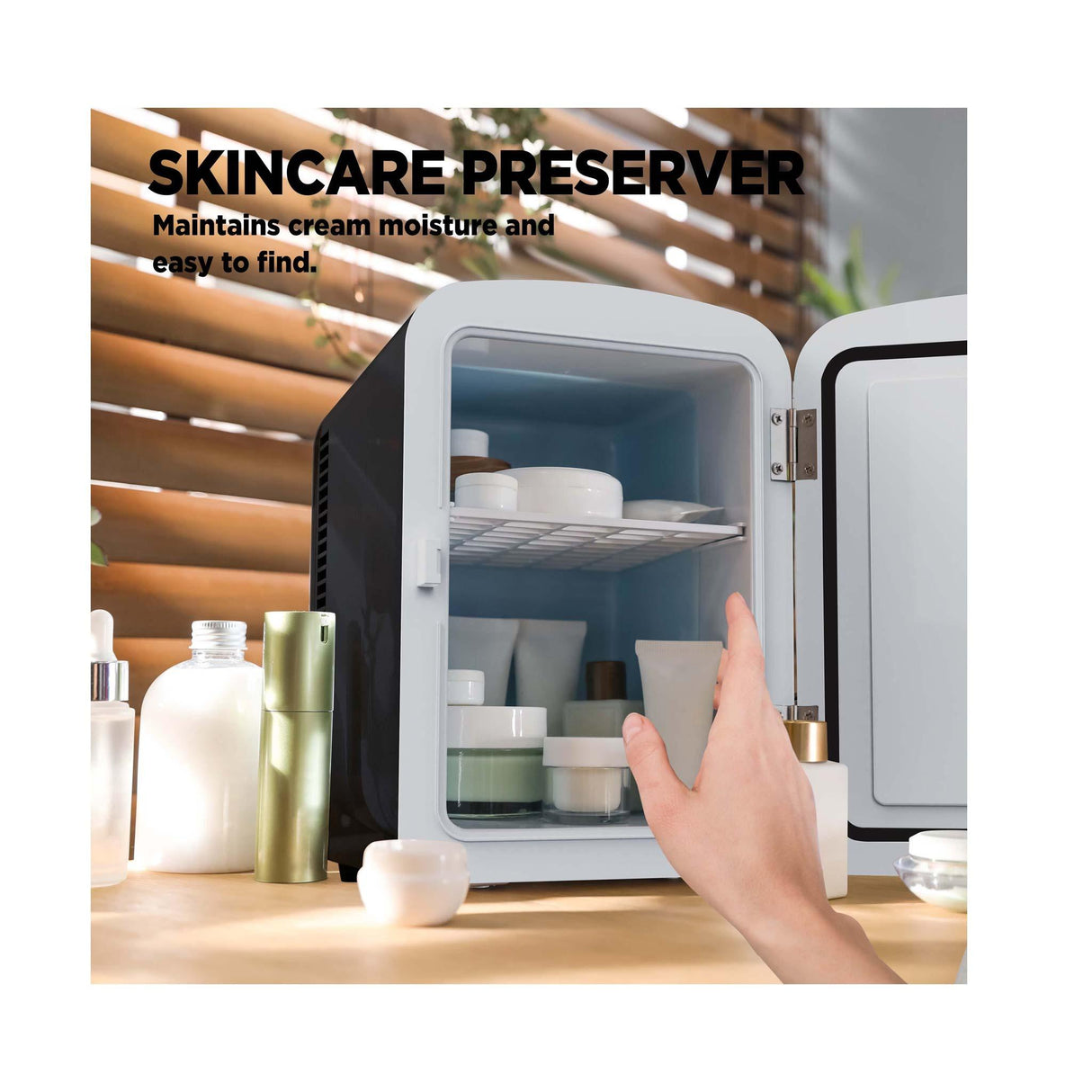 Enjoy instant plug-and-play convenience with automatic defrost, easy-clean plastic shelving, and a left-hinged door designed for tight spaces. Its compact form factor ensures frictionless integration into dorms, offices, vanity stations, and car travel.